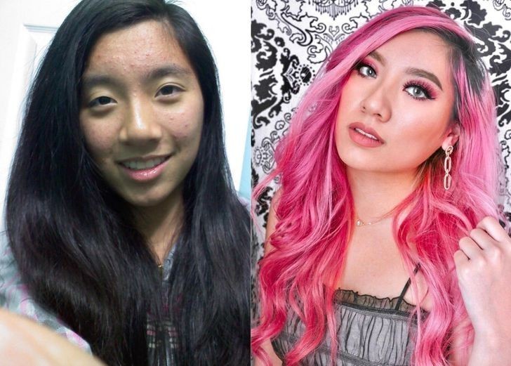 19. „Z lewej 15 lat, z prawej 23: Moja skóra oczyściła się, a włosy nabrały ciekawszego odcienia.”