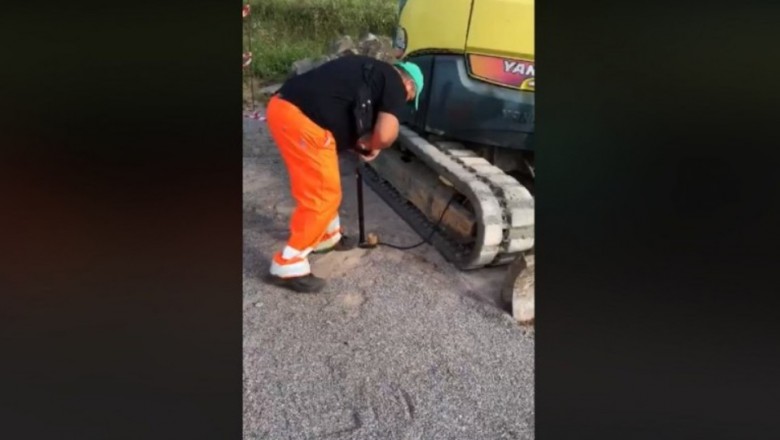 Żarty budowlańców są chyba tak samo kreatywne na całym świecie. Dziwi mnie jednak to, że są osoby które się na nie nabierają. Tym razem wkręcili gościa, który chyba nigdy w życiu nie miał do czynienia z koparkami. Mocno się starał, ale coś się nie chciało napompować.