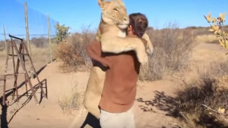 Ponoć koty nigdy nie reagują na swoich właścicieli jak psy. Tym bardziej dzikie koty! Powinny chodzić swoimi ścieżkami. Ten materiał zdaje się przeczyć wszystkim tym teoriom! Ta lwica zdecydowanie ma słabość do swojego opiekuna ;)